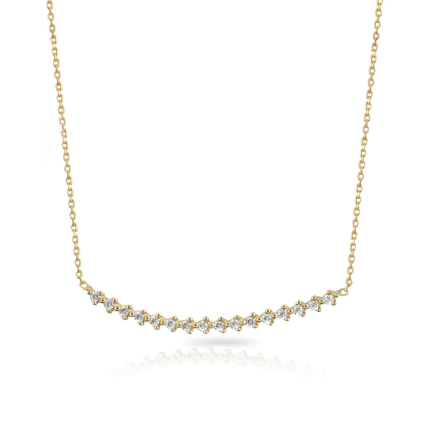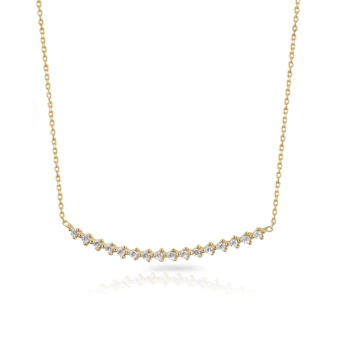 This necklace is crafted from 14K yellow gold.