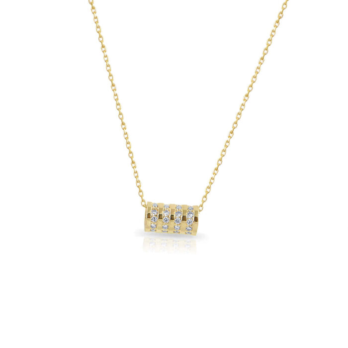 This necklace is crafted from 14K yellow gold.